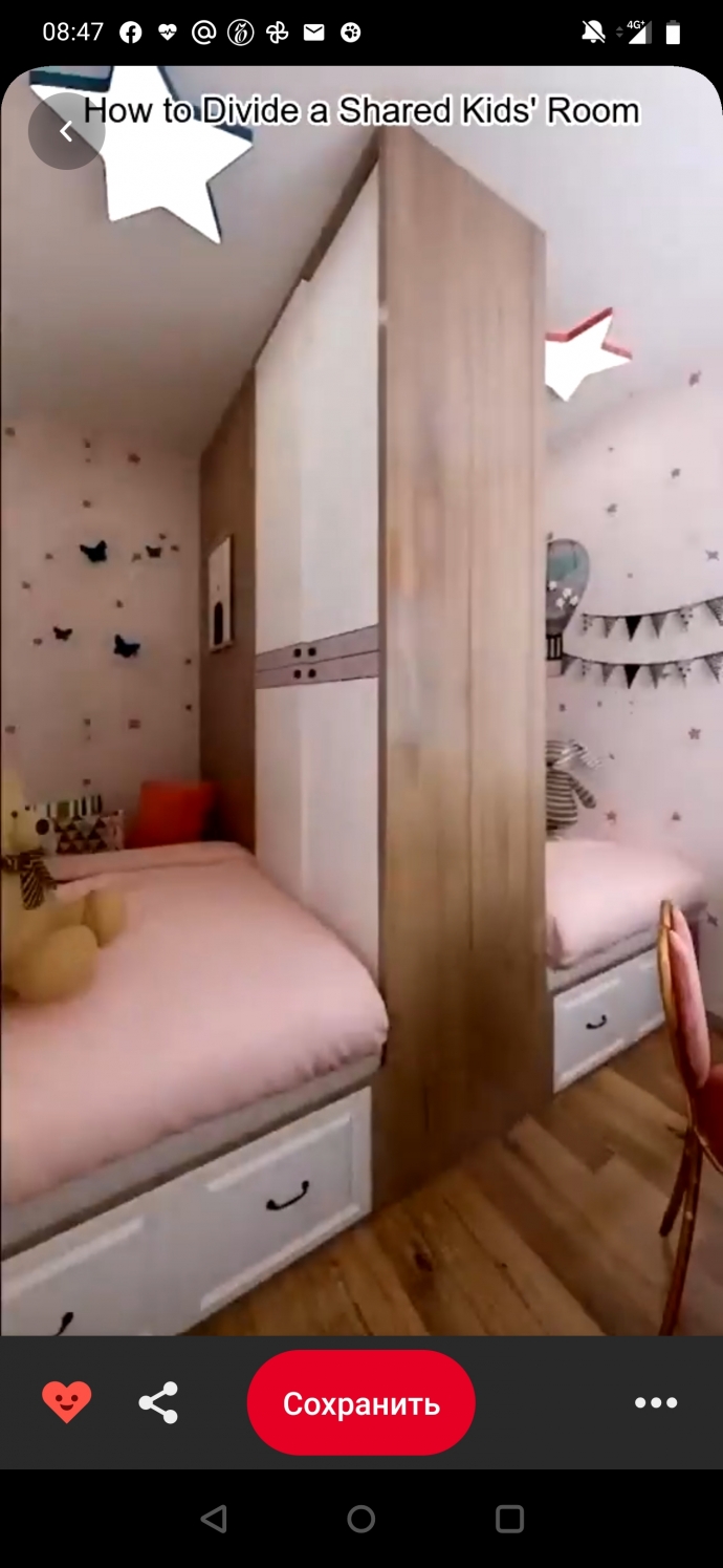 Вот здесь интересный вариант, не могу что то ссылку на видео вставить, разделили две кровати шкафами, который поставили зеркально, у каждого своя мин комнатка, под кроватями тоже уложенный простор. На другой стороне стол