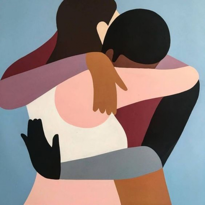 Представляем вашему вниманию уникальную картину размером 50x70 см, которая станет настоящим украшением любого интерьера. На этом шедевре изображена пара, обнимающаяся в абстрактной манере. Плавные линии и богатая палитра оттенков — от коричневого и песочного до ярких желтого, оранжевого, синего, фиолетового и бордового — передают нежность и глубину состояния любви.