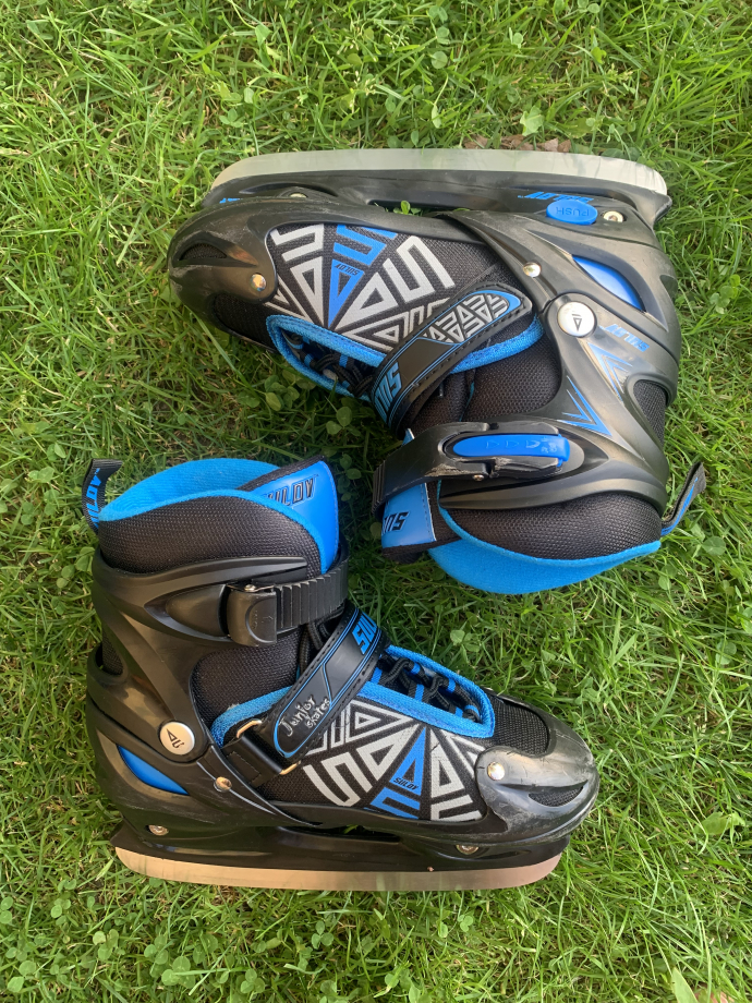 Срочно продаю коньки в связи с переездом. Состояние хорошее, только сбиты носы. Крепление рабочее, лезвия не ржавые, на лезвия есть защита. Размер первых коньков 38-41, вторых — 34-37. Сумки для переноски в прекрасном состоянии. Стоимость 1 пары + сумка = 300 крон.