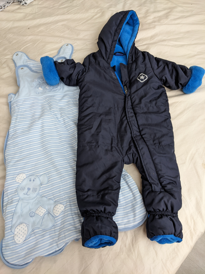 Отдам вещи на мальчика. Размеры 62, 68, 74. Комбинезон зимний и спальный мешок. Забирать недалеко от остановки sídliště Bohnice