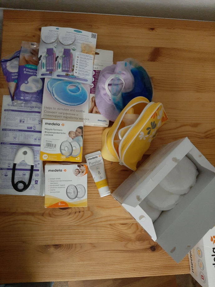 Продам, электрический молокоотсос, как новый, цена 1230 Крон. Пошлю вам Засилковной на ваш адрес (я не из Праги). Положу к тому разные вещи относящиеся к кормлению (они использованы были, многоразовые, выварила и продезинфецировала в микровалновке, ), защитники новые упакованы, начатая упаковка одноразовых подкладок, 2/3 крем для сосков- всё что видите на фото.