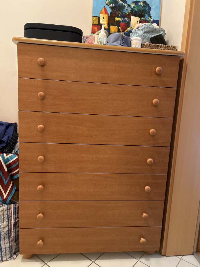 Продаю шкаф детский, итальянская фирма Mibb, к нему сундук для игрушек и комод. Все вместе 4.000 крон.