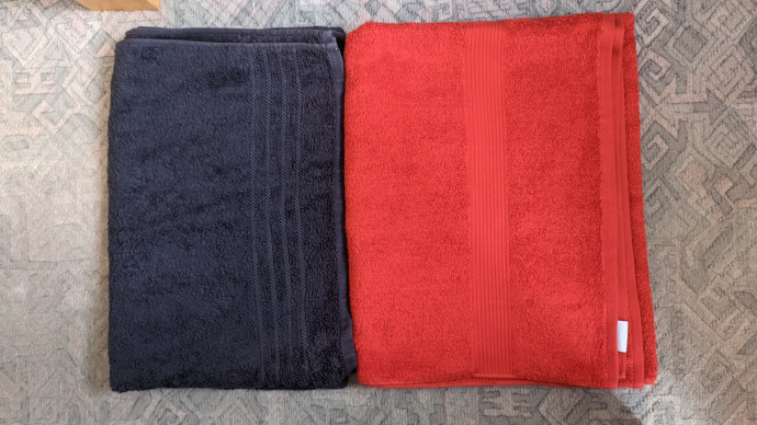 большие, новые, без бирки: красное 95х150, синее 95х140 за 400 кр/шт., полотенце банное белое, как новое, 65х130 200 кр.