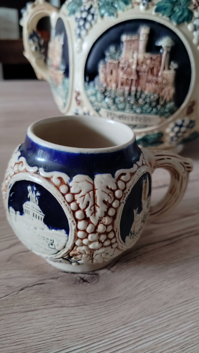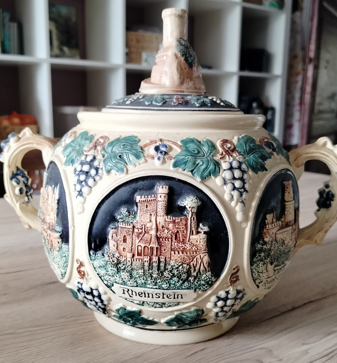 Продаю оригинальный керамический сервиз, произведенный в Западной Германии (маркировка «Made in West Germany»). Сервиз состоит из большого сосуда объемом 4 литра и 5 кружек. На изделиях присутствуют красивые рельефные изображения замков, виноградных лоз и других декоративных элементов. Номер модели: 5000.Состояние отличное, без сколов и трещин. Этот сервиз станет прекрасным дополнением вашей коллекции или стильным украшением дома.Цена: 2000 чешских крон (цена обсуждаема). Почтой и курьером не посылаю.