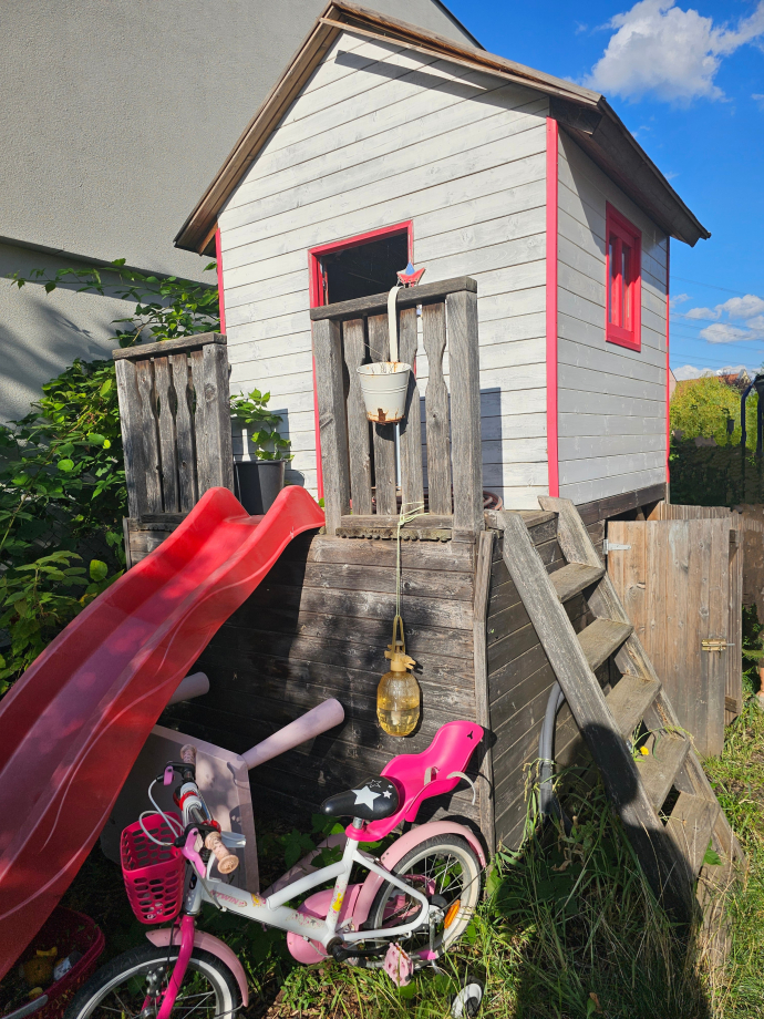 Снизу а-ля сараюшка, сверху дом для детей. Горка