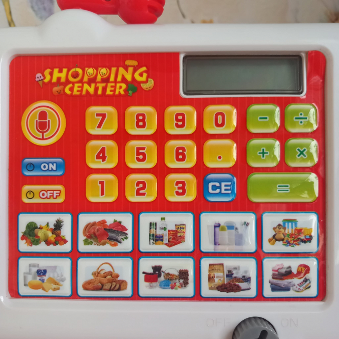 Хорошая игрушка для детей. В комплекте есть игрушечные будажные деньги и ключ, для включения. Очень хорошая и практически новая вешь. 100 крон.