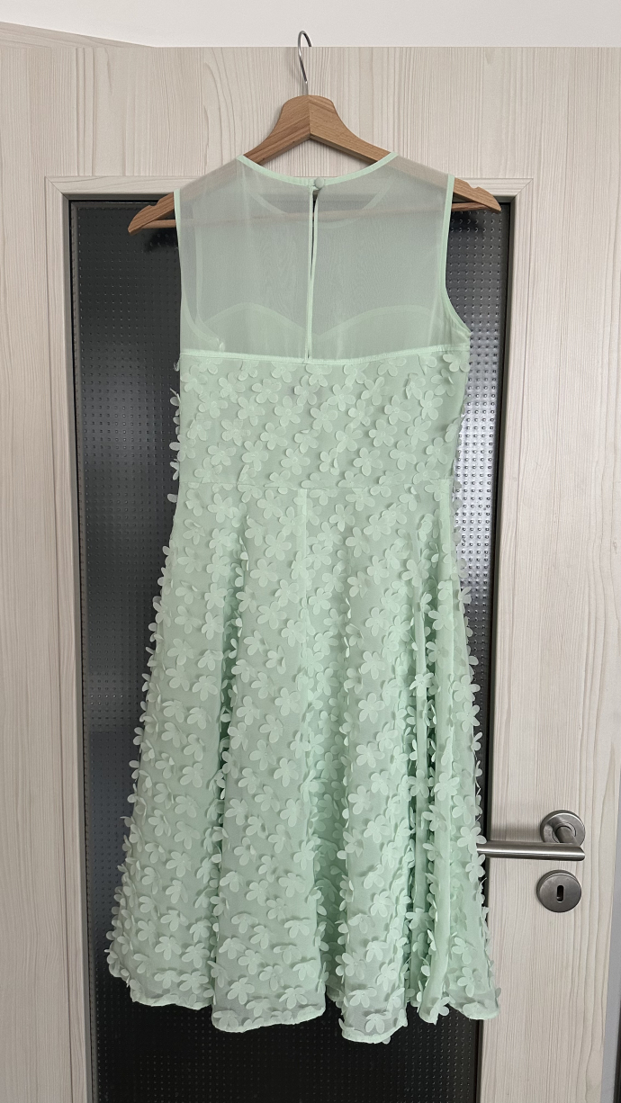 Продам светло зеленое, мятное/ментоловое платье размер 36 (S, 8). Надето один раз. Легко стирается/не мнется. Подходит для любого мероприятия, на выпускной, бал.