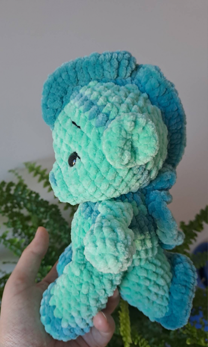 Предлагаю к продаже мягкие игрушки — бирюзовый динозавр из пряжи Himalaya Dolphin Baby. Длина 21 см. Имеет глаза на безопасном креплении. Цена 200 Kč