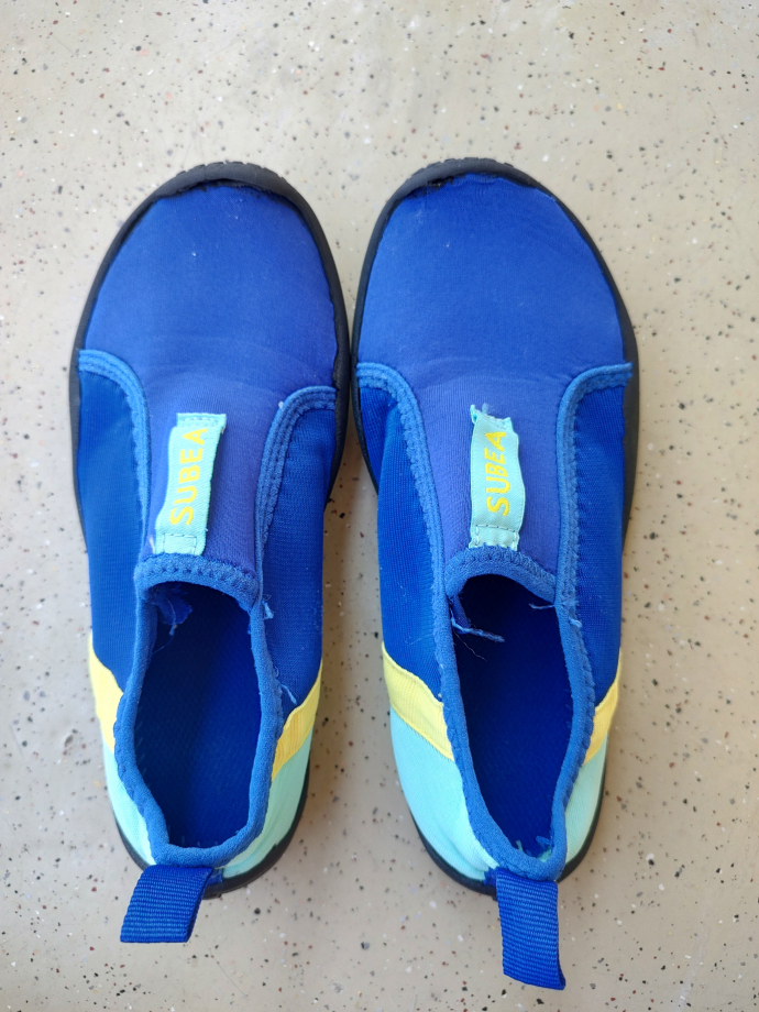 Продам детскую обувь для воды, размер 32-33, фирма Decathlon. Цена 100крон. Ласты размер 30-33. Цена 150крон. Все вместе за 200крон. Прага 5/13.