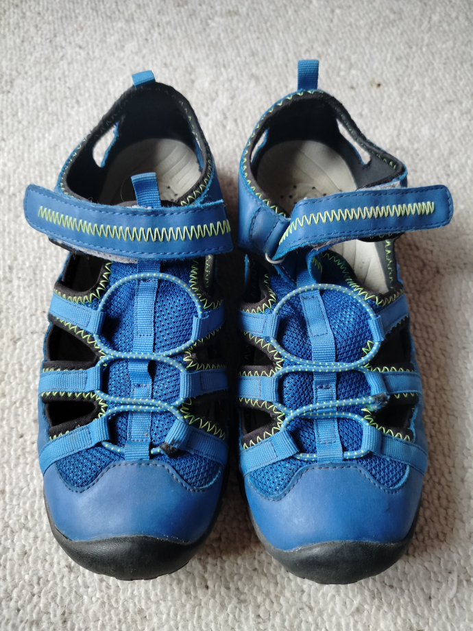 Натуральная кожа.Размер 39, больше на 38, 5 идут.На узкую ножку.Очень качественные и мягкие.Мне узковаты.Одеты были 2 раза.Цена 480 крон.Писать в л.с