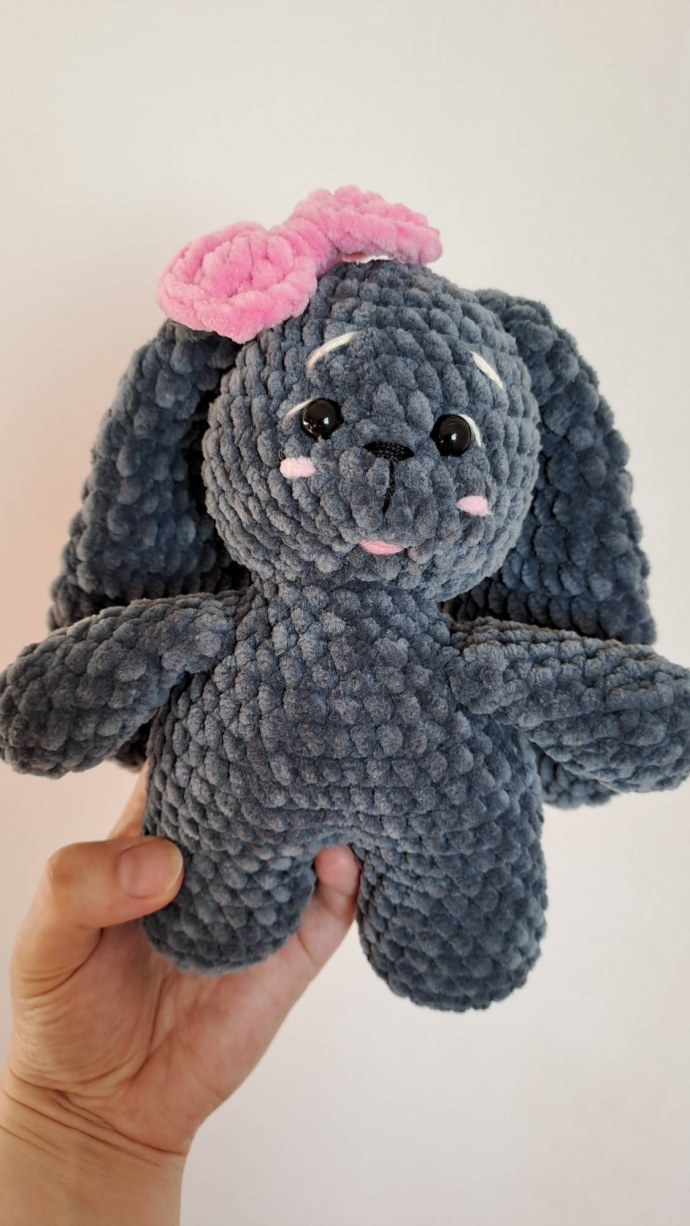 Предлагаю к продаже зайца с бантиком, ручная работа из Himalaya Dolphin Baby. Глаза на безопасностном креплении. Рост 21 см, с ушками 36 см. Цена 210 крон.